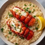 This Lemon Butter Lobster Risotto is a luxurious and creamy dish combining succulent lobster meat infused with garlic and lemon, tender Arborio rice cooked to a perfect creamy consistency, and finished with Parmesan cheese and fresh herbs. The risotto strikes a beautiful balance between buttery richness and bright, citrusy notes, making it a perfect elegant meal for seafood lovers.