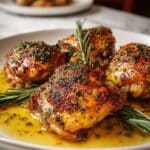 This Lemon Paprika Roast Chicken Thighs recipe features juicy bone-in, skin-on chicken thighs marinated in a vibrant blend of fresh lemon juice, smoked paprika, garlic, olive oil, and basic seasonings. Roasted to crispy golden perfection, this dish strikes a beautiful balance of smoky, tangy, and savory flavors while remaining simple and quick to prepare. Garnished with fresh herbs and lemon wedges, it makes a rustic yet elegant main course perfect for weeknight dinners or gatherings.