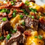 - Serve: Serve the loaded steak and potato bake warm for a satisfying, wholesome meal that combines tender meat, cheesy potatoes, and smoky bacon in every bite.