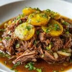 - Shred and Serve: Once cooked, shred the beef directly in the slow cooker and stir it back into the sauce for even distribution of flavors. Garnish with fresh parsley if desired before serving.
