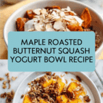 Keywords: butternut squash yogurt bowl, roasted butternut squash, maple syrup breakfast, healthy yogurt bowl, granola topping, cinnamon roasted squash, vegetarian breakfast bowl