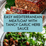 Keywords: Mediterranean meatloaf, garlic herb sauce, baked meatloaf, ground beef recipe, easy dinner