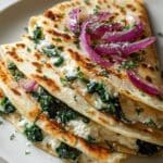 These Mediterranean quesadillas combine fresh spinach, tangy feta, creamy mozzarella, and sharp red onion for a flavorful twist on a classic snack. Quick to make and perfect for lunch or dinner, they bring bold Mediterranean flavors wrapped in a crispy whole wheat tortilla.