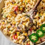 Keywords: Mexican macaroni salad, grilled corn salad, creamy pasta salad, summer side dish, gluten-free pasta salad