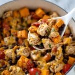 Keywords: Mexican chicken skillet, sweet potato black beans, one pan dinner, quick Mexican recipe, healthy chicken skillet