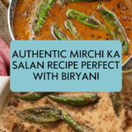 10. Finish and Serve: Once done, turn off the heat. Serve the Mirchi ka Salan hot as a spicy, tangy side dish alongside your favorite biryani or rice preparation.