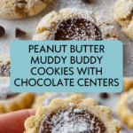 Muddy Buddy Cookies are a delightful peanut butter cookie topped with a smooth milk chocolate center and a dusting of powdered sugar. These treats combine rich flavors and a unique texture that will satisfy any sweet tooth.