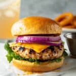 These Mustard Chicken Apple Burgers offer a delightful combination of savory bacon, tender chicken, and sweet apple flavors. Topped with melty cheese and a tangy mustard-maple sauce, they make a fresh twist on classic burgers perfect for any season.