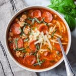 Keywords: Pizza Soup, Italian sausage soup, pepperoni soup, tomato soup, easy soup recipe, comfort food soup