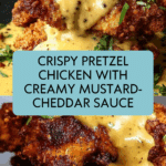 Keywords: Pretzel Chicken, Mustard Cheddar Sauce, Crispy Chicken, Baked Chicken Recipe, Comfort Food