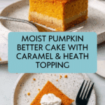 Pumpkin Better Cake is a moist and delicious dessert that combines the warm flavors of pumpkin with sweetened condensed milk and crunchy Heath bits. This easy-to-make layered cake is perfect for fall gatherings or any time you want a comforting treat.