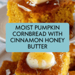 This pumpkin cornbread is a cozy twist on a classic favorite, combining warm spices and moist pumpkin for a flavorful treat. Served with a sweet and creamy cinnamon honey butter, it’s perfect for fall gatherings or a comforting snack any time of year.