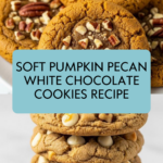 Keywords: pumpkin cookies, white chocolate cookies, pecan cookies, fall desserts, pumpkin spice cookies, homemade cookies