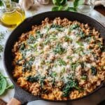 This Sage Butter Turkey & Wild Rice Skillet is a hearty, flavorful one-pan meal combining lean ground turkey, nutty wild rice, fresh herbs, and sautéed spinach, all finished with a rich sage-infused butter and optional Parmesan cheese for an extra depth of flavor. It’s a comforting, easy-to-make dish perfect for a wholesome weeknight dinner.