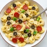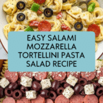 Keywords: salami tortellini salad, mozzarella pasta salad, cheese tortellini salad, Italian pasta salad, easy pasta salad, cold pasta salad