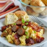 - Use precooked sausage patties to save time, or substitute with fresh sausage links cooked thoroughly.