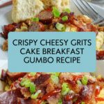 - Serve the Breakfast Gumbo: Place one golden grits cake in a shallow bowl. Top with the cooked eggs, bacon, sausage, diced green onions, and sprinkle with hot sauce to taste. Serve immediately for a delicious Southern-style breakfast.