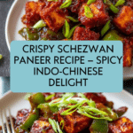 Schezwan Paneer is a vibrant Indo-Chinese dish featuring crispy paneer cubes coated in a tangy, spicy, and flavorful Schezwan sauce made with garlic, ginger, bell peppers, and a mix of savory sauces. This recipe offers both deep-fried and air-fried options to suit your preference for a crunchy texture paired with a bold, spicy sauce that makes a perfect appetizer or snack.