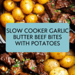 Keywords: slow cooker beef bites, garlic butter beef, beef stew potatoes, easy slow cooker recipe, comfort food, beef and potatoes