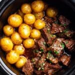 PrintSlow Cooker Garlic Butter Beef Bites with Potatoes Recipe