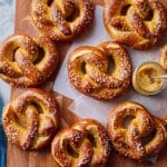 - Boil pretzels in baking soda bath to achieve chewy crust and characteristic pretzel flavor.