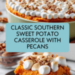 A classic Southern Sweet Potato Casserole with a creamy sweet potato base, topped with gooey miniature marshmallows and crunchy toasted pecans. This comforting casserole blends smooth sweetness with nutty texture, perfect for holiday dinners or family gatherings.