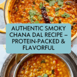 Chana Dal is a comforting and flavorful Indian lentil dish made from split chickpeas cooked with aromatic spices, tomatoes, and a ginger-garlic-green chili paste. The recipe features a slow simmered dal base with a tempering of whole spices and garlic tadka, optionally enhanced by the traditional smoky dhungar method for a deep, smoky aroma. Perfect served with roti or rice, this protein-rich dal is both nutritious and satisfying.