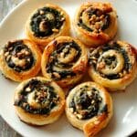 These Spinach and Cheese Pinwheels are a delightful and savory appetizer perfect for bridal showers, parties, or any special gathering. Made with flaky puff pastry filled with a creamy blend of spinach, cream cheese, and mozzarella, they bake up golden and crisp, making for an irresistible bite-sized treat.