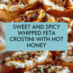 This Sweet and Spicy Whipped Feta Crostini with Hot Honey Magic makes for an irresistible appetizer or snack. Creamy, tangy whipped feta is balanced perfectly with a touch of sweetness and heat, all served on crispy golden baguette slices.