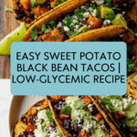 These Sweet Potato and Black Bean Tacos are a delicious, low-glycemic meal perfect for a healthy and flavorful lunch or dinner. Roasted sweet potatoes combined with seasoned black beans, fresh toppings, and warm tortillas create a satisfying vegetarian dish packed with nutrients and vibrant flavors.