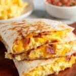 Keywords: Taco Bell Breakfast Quesadilla, breakfast quesadilla, scrambled eggs, bacon quesadilla, easy breakfast recipe