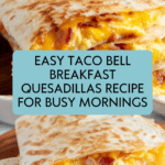 A delicious and easy-to-make Taco Bell-inspired Breakfast Quesadilla featuring fluffy scrambled eggs, crispy bacon, and melted cheese, perfect for a hearty breakfast or brunch.