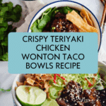 Keywords: teriyaki chicken, wonton taco bowls, air fryer wontons, Asian slaw, quick chicken bowls, crispy wonton strips