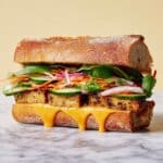 Keywords: Tofu Banh Mi, vegan sandwich, Vietnamese sandwich, pickled vegetables, tofu marinade, pan-fried tofu, spicy mayo, vegan banh mi