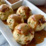 5. Serve: Serve the turkey stuffing balls immediately while hot. Top generously with warm gravy and add cranberry sauce on the side if desired for a festive touch.