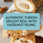 Turkish Delight Roll, or Lokum, is a soft, chewy nougat filled with a rich hazelnut paste and coated in crunchy almonds. This traditional confection combines honey, egg whites, and nuts for a delightful treat that’s perfect for sharing or enjoying with tea.