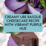 Keywords: Ube Basque Cheesecake, ube dessert, Filipino cheesecake, baked cheesecake, Basque dessert, purple yam dessert, ube halaya cheesecake