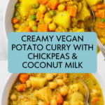 Keywords: vegan potato curry, plant-based curry, chickpea curry, coconut milk curry, Indian-inspired vegan recipe, easy vegan dinner