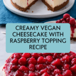 This vegan cheesecake is a creamy, dreamy dessert that’s completely plant-based yet rich in flavor. With a crunchy oat and almond crust, a smooth cashew filling, and a fresh raspberry topping, it’s perfect for any occasion.