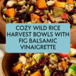 A hearty and flavorful Wild Rice Harvest Bowl featuring nutty wild blend rice, roasted butternut squash, caramelized Brussels sprouts, crisp apples, crunchy almonds, and sweet dried cranberries, all tossed in a tangy and sweet fig balsamic vinaigrette. This nutrient-rich bowl combines warm roasted vegetables and fall flavors for a comforting, gluten-free meal perfect for autumn or any time you crave a wholesome, colorful dish.